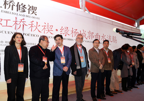 10月26日,2016瘦西湖虹桥修禊系列活动在瘦西湖“虹衢春风”景区开幕。来自西班牙、墨西哥、哥伦比亚、洪都拉斯、古巴等五国6位西班牙语系着名诗人,中国作家协会副主席吉狄马加等国内着名诗人代表6人,西班牙文化及科学事务参赞格罗丽亚·明格斯女士,西班牙塞万提斯学院院长易玛等5位特邀嘉宾,以及国内外近200名诗歌爱好者雅聚大虹桥旁,共同参与奏乐焚香、禊词祝祷、酾酒以祀、兰泉洒沐、曲水流觞等多个环节,重现“虹桥修禊”盛景。扬州市委常委、宣传部部长姜龙出席开幕式并致辞。