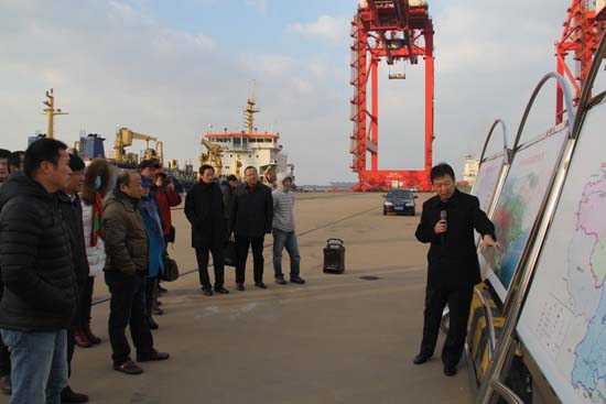连云港位于“丝绸之路经济带”和“21世纪海上丝绸之路”的交汇处,是新欧亚大陆桥东端起点,是“一带一路”国家战略中的节点城市,是省委、省政府明确的“一带一路”交汇点建设的核心区先导区。作为这次采风实践活动基地的连云港港,是“一带一路”国家战略重点支持的中哈(连云港)物流中转基地。14日下午,作家一行赴连云港中哈物流基地、新东方集装箱码头采风。港口控股集团党委副书记孙明、中哈物流公司总经理刘斌亲自给作家们讲解“一带一路”与连云港的血脉关系,在两个半小时详细、生动、有趣讲解中,在凛凛的海风中,作家们深切地感受到了“一带一路”的重要意义,完全沉浸在采风和收获的喜悦中,一站就是两个多小时,也全然不觉劳累。